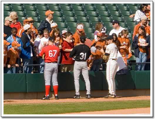 Curtis did something very entertaining. He set up shop at the end of the dugout and signed autographs for a very long time. The crowd around him grew and he actually started handing out stuff from his duffel bag to the folks in the crowd. At one point, I saw him toss a pair of sweat pants (or maybe they were uniform pants) into the crowd. He seems like such a nice guy.
