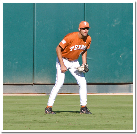 Cameron Rupp taking his lead off 1b as he watches the Texas State pitcher:
