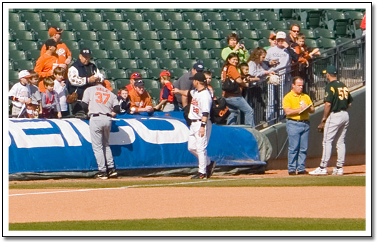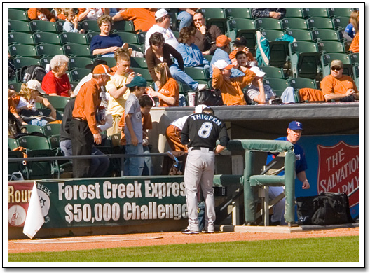 Curtis did something very entertaining. He set up shop at the end of the dugout and signed autographs for a very long time. The crowd around him grew and he actually started handing out stuff from his duffel bag to the folks in the crowd. At one point, I saw him toss a pair of sweat pants (or maybe they were uniform pants) into the crowd. He seems like such a nice guy.