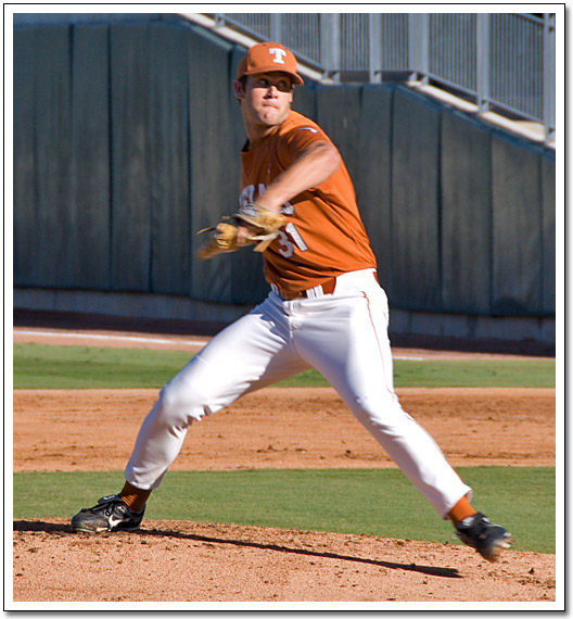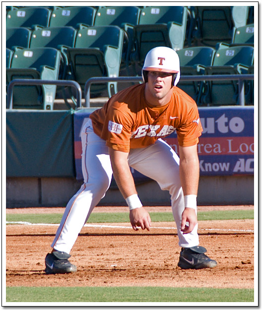 Cameron Rupp taking his lead off 1b as he watches the Texas State pitcher: